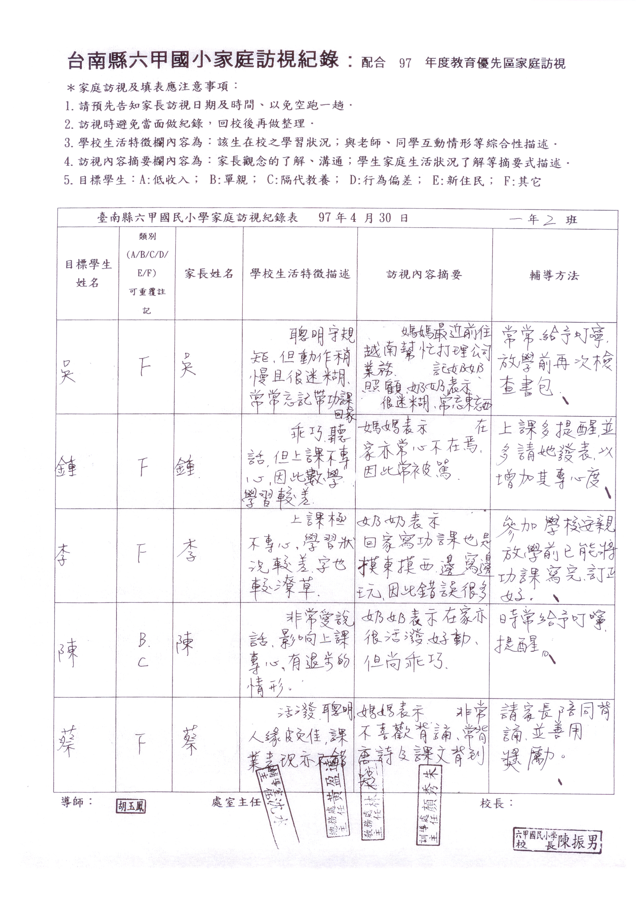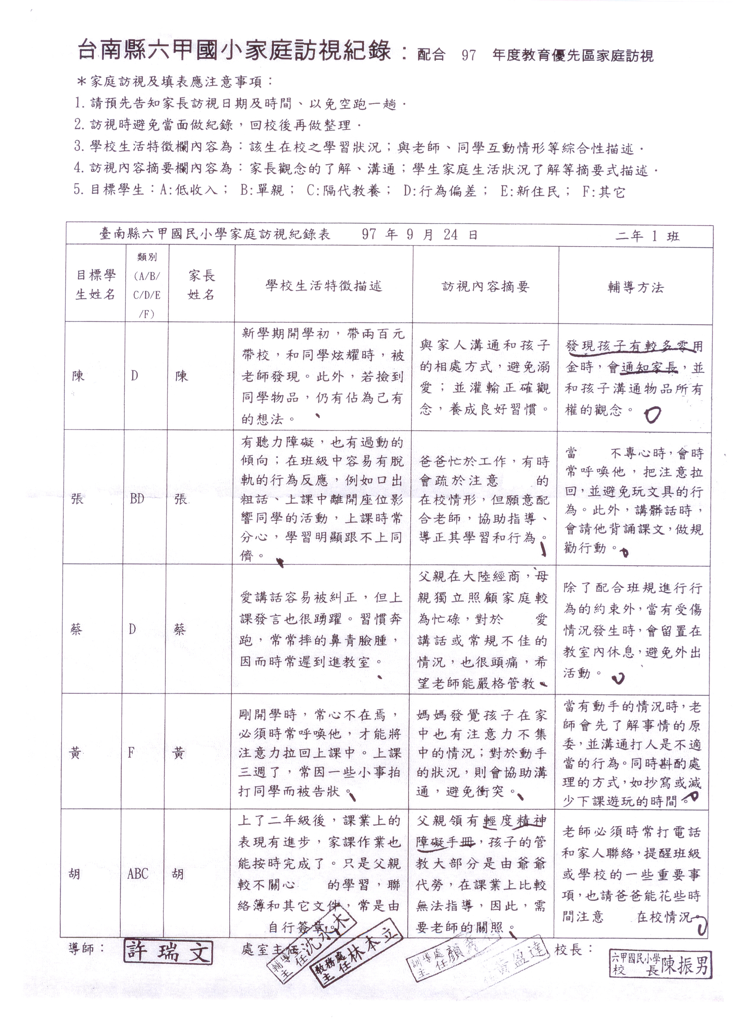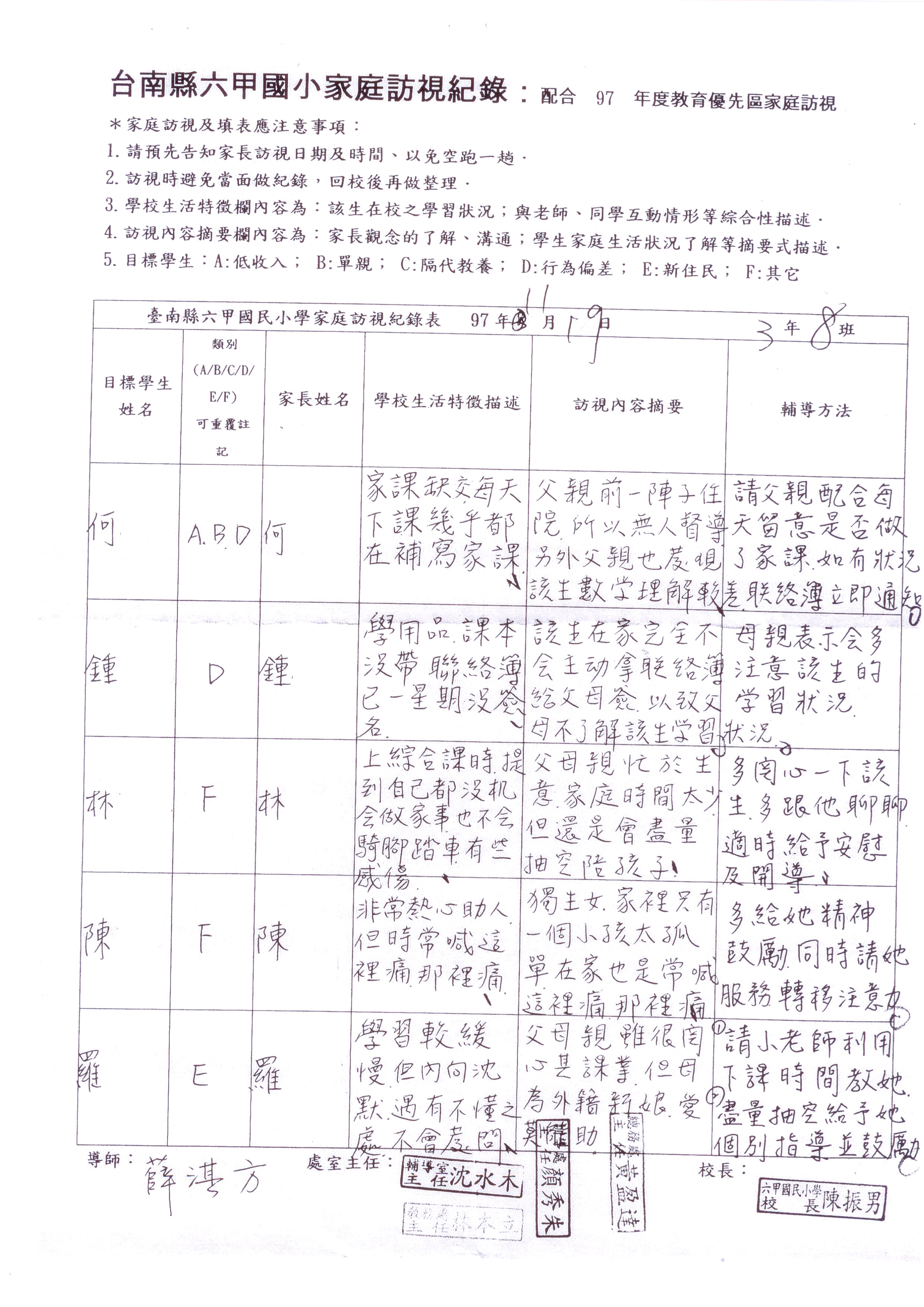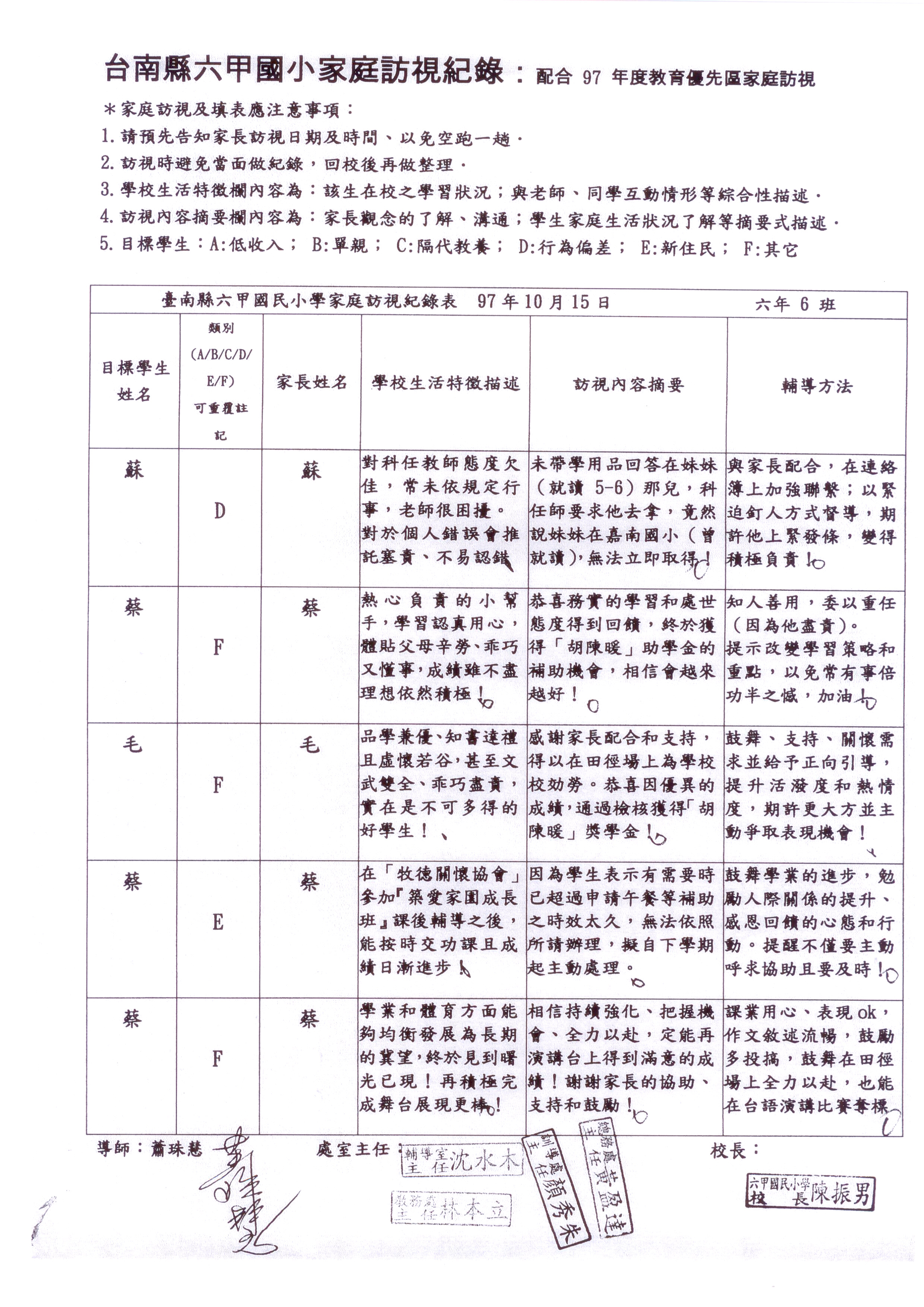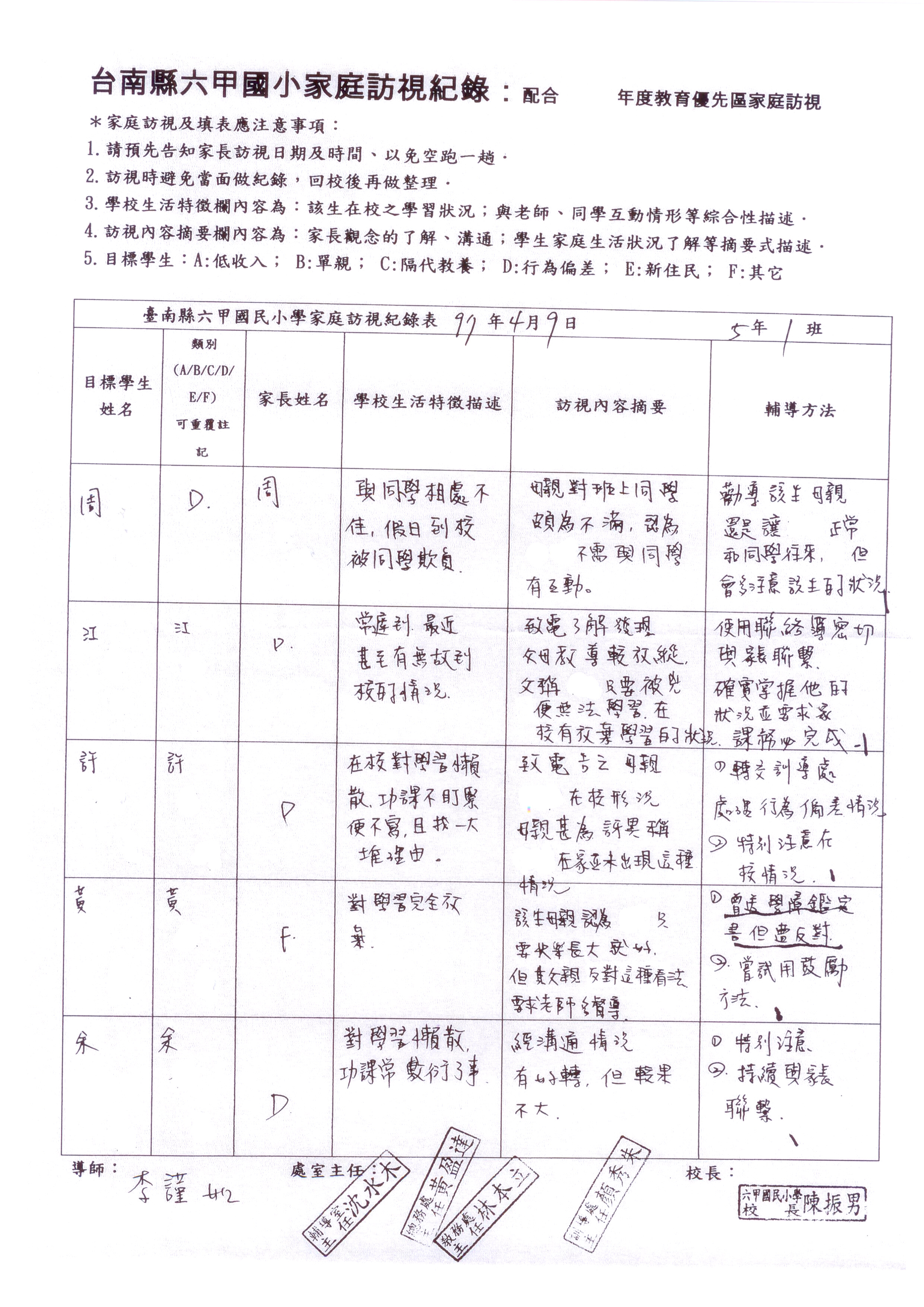 導師家庭訪視紀錄表